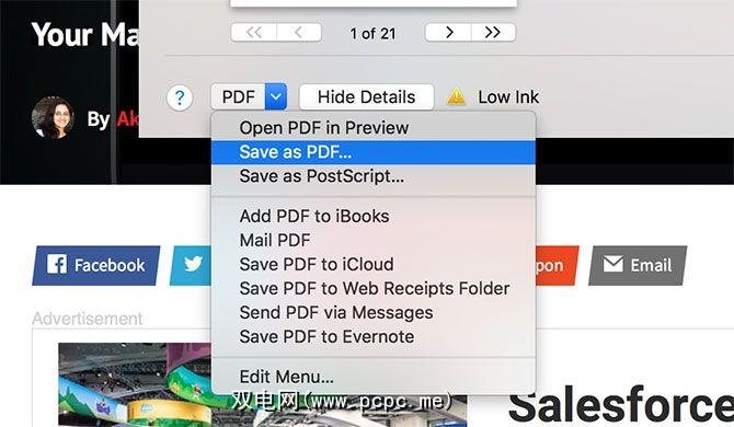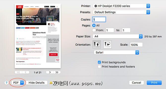 几乎所有允许您在Mac上打印的应用程序都可以创建PDF文件。其中包括您的浏览器,文字处理器,电子表格应用程序,甚至是图像编辑器。最好的用途之一是直接在浏览器中将网页另存为PDF。
