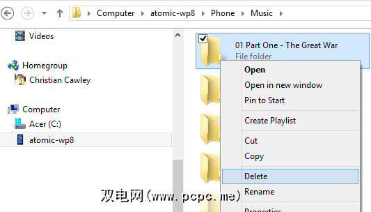也可以使用Windows Phone Sync Tool删除文件,尽管这很耗时。