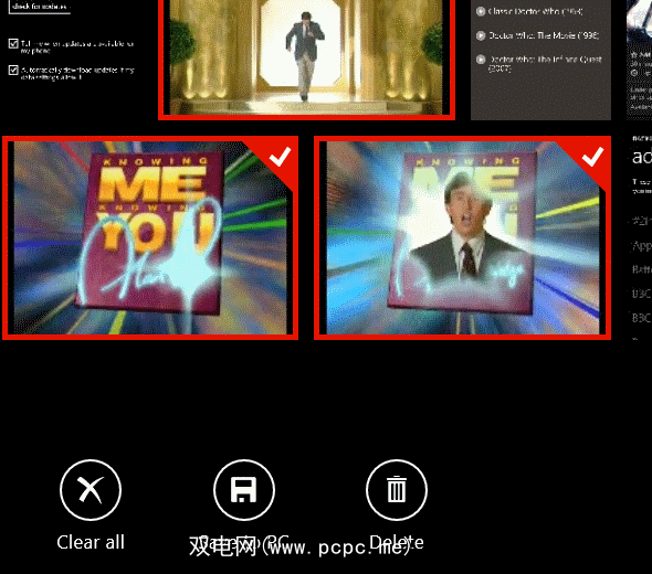 在下一个屏幕中,点击并按住要删除的磁贴。屏幕底部的上下文菜单将会出现,邀请您删除该项目。您也可以使用全选准备删除大容量媒体。