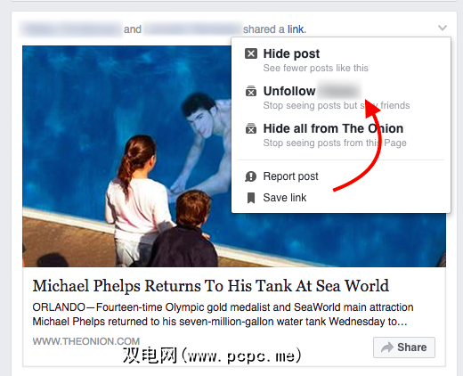 在Facebook上,您可以从新闻源或他们的Facebook个人资料中使朋友静音。在您的新闻提要中,单击右上角的箭头,然后单击“取消关注[联系人的姓名]"。