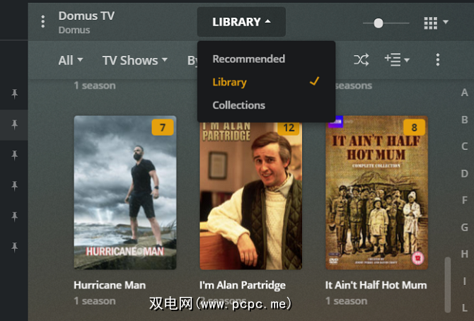 只要在按照我们在本文开头概述的方式,您将看到它们在您的库中内联显示。但是,即使您将该设置保留为“禁用",也仍然可以通过单击“ Plex"窗口顶部的下拉选项卡来查看给定库的集合。