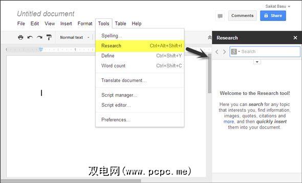 考虑到这些双重好处,让我们使用研究工具来建立新文档。