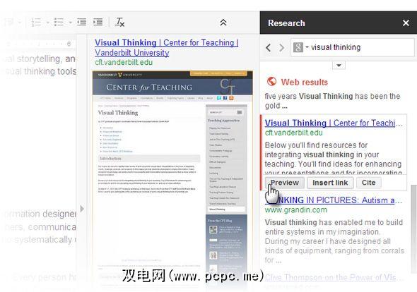 Google云端硬盘上的研究工具可以相比之下,Google助手可以帮助您搜索相关内容,图片,地图以及其他要包含在文档中的信息。可以将其视为Google搜索的扩展程序,它可以帮助您浏览网络而不会将焦点从正在处理的文档上移开。正如您可以同时进行写作和研究一样,您的思维过程不会因从研究到写作的不断转换而中断。这样一来,您就可以剃光几秒钟,从而提高工作效率。