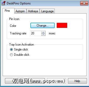 首先,如果您不是红色恋人,则可以在第一个标签菜单中将图钉颜色更改为您喜欢的颜色。您还可以更改跟踪速率并单击或双击以激活系统托盘中的销。
