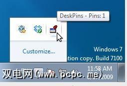 单击Deskpins图标。您的鼠标光标将立即变为固定图标。单击任何窗口可将其固定到桌面的最高级别。现在,您将在该特定窗口上看到一个图钉。