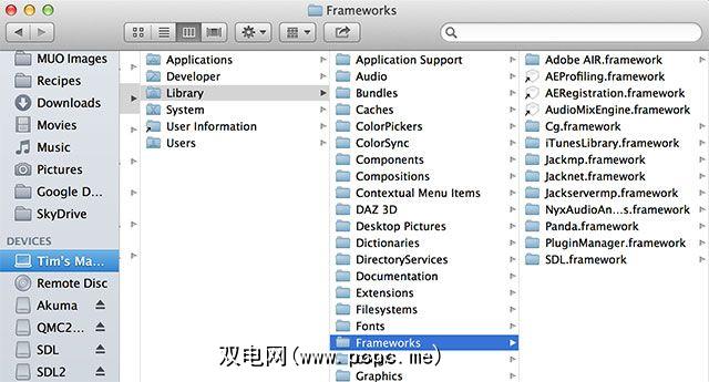 下载了运行时,打开Finder,导航到 Library> Frameworks ,然后将SDL.Framework文件夹拖到Mac的Frameworks文件夹中。当OS X要求您输入密码对传输进行身份验证时,您就会知道自己做对了。