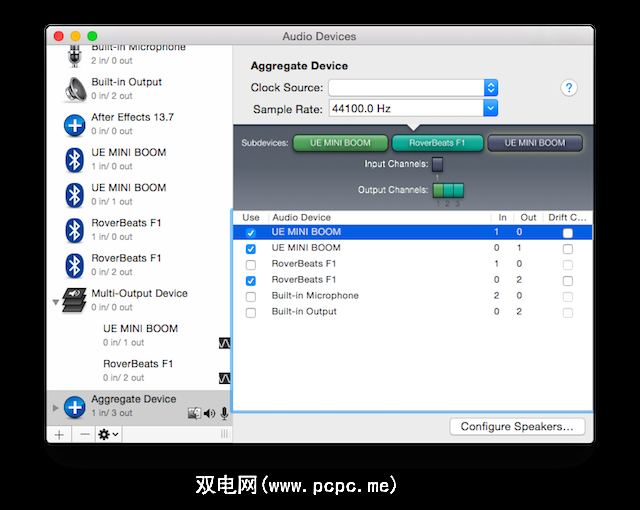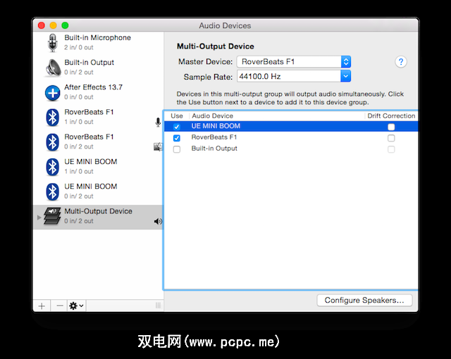 现在您应该可以看到与计算机配对的所有已连接的输出耳机。只需检查要使用的耳机,即可从两个耳机播放声音。如果您发现音频未完全同步,请确保选中“漂移校正"。