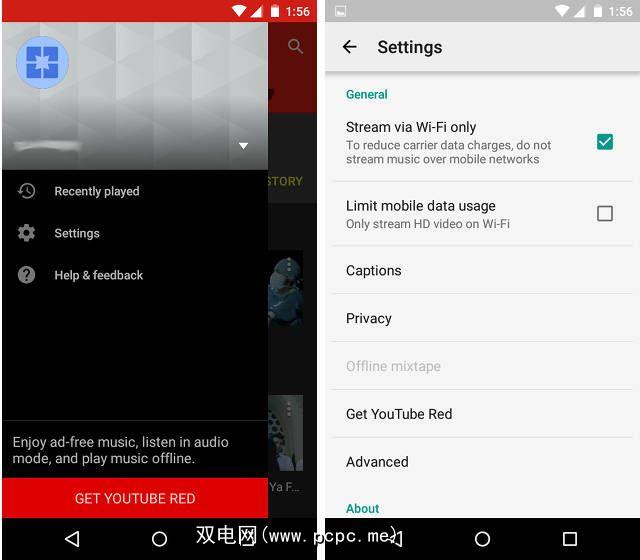 所有您需要做的就是打开侧面菜单,选择设置,然后勾选标记为仅通过Wi-Fi的流的设置的复选框。如果您仍要仅以非高清质量流式传输移动数据,请勾选限制移动数据使用量复选框。