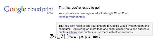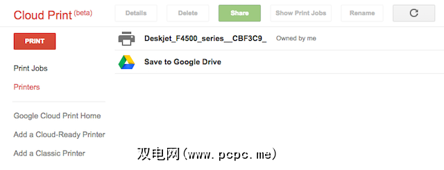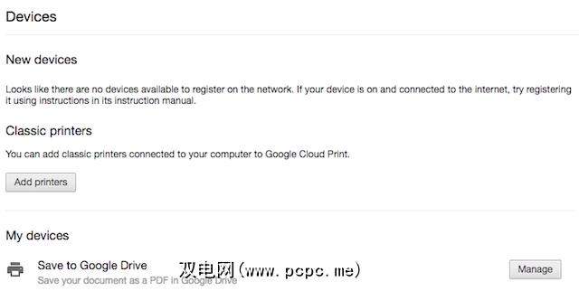 用于管理打印机,打印作业或注册新设备,请访问Google Cloud Print网站。