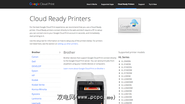 Google维护了支持Cloud的打印机的完整列表。这些打印机直接连接到Web,并且可以在没有PC的情况下运行。
