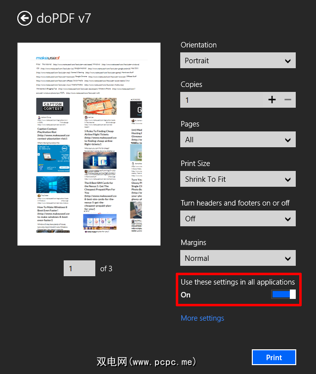 您可以从任何应用程序打印到PDF支持打印。您所需要的只是第三方PDF打印机。我们之所以推荐doPDF,只是因为它支持64位Windows 8,并且不尝试安装讨厌的工具栏。