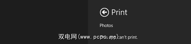 要打开超级按钮,请从屏幕的右边缘滑动或将鼠标移到屏幕右侧的一个角上。选择设备,然后从列表中选择打印机。如果收到此应用无法打印消息,则说明您不走运。