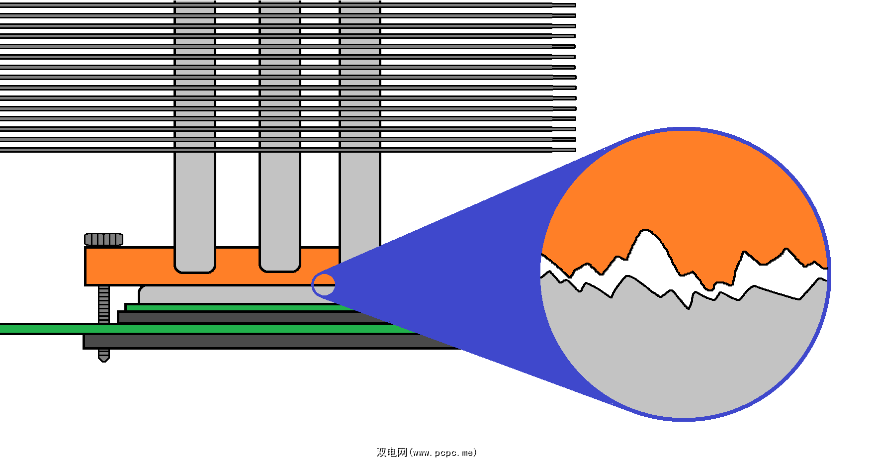 无论这些表面抛光得多么平整,表面处理上都一定会有微小的缺陷。随后在这些表面之间形成的气穴对于导热性来说是很糟糕的。