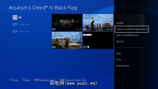 突出显示,按下选项按钮。选择复制到USB存储设备。