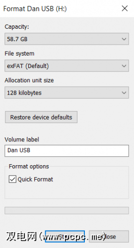 要重申—确保“快速格式化"复选框中有一个勾号是非常重要的。如果您对驱动器进行完整格式化,则您将丢失所有数据。