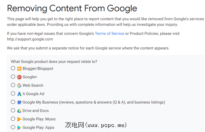 在大多数情况下,可以使用此表单提交从Google删除内容的请求。