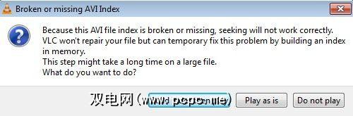 如果您尝试在VLC中打开损坏的AVI文件,则会看到屏幕错误消息: