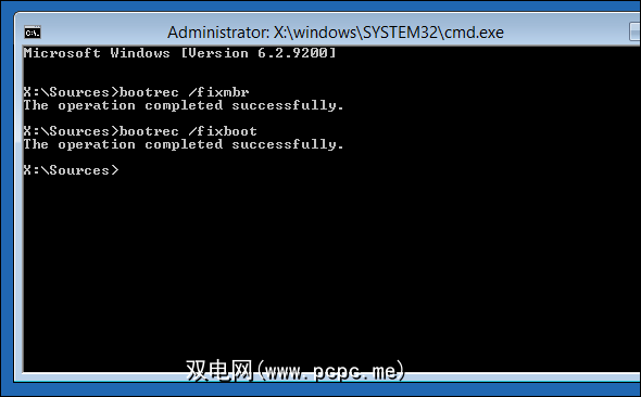 第一个命令修复您的主引导记录,第二个命令将新的引导扇区写入硬盘驱动器。这些命令应该可以解决您的问题。