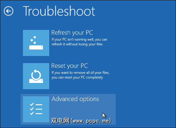 单击故障排除,然后单击“高级选项"。 / em>