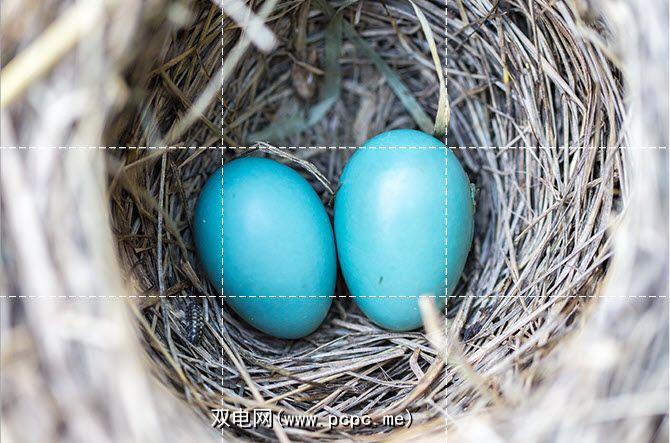 照片中的其他元素(例如,一棵树)或房屋)可以放置在四个相交点之一附近。