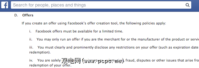 Facebook内的所有优惠和促销必须仅在有限的时间内进行,且有所有限制限制条件清晰显着。例如,必须明确年龄和地区限制。