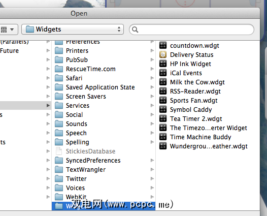 您看到的文件夹为 / Users / 用户名 / Library / Widgets ,其中“ 用户名"是您用于登录Mac的帐户。当然,您会注意到,并非系统上的每个小部件都在其中–默认情况下,缺少这些小部件。相反,它们位于操作系统驱动器上的 / Library / Widgets 。