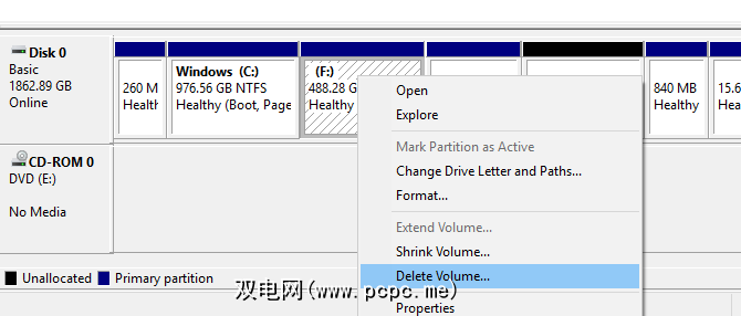 确定后,就该删除Ubuntu分区了。右键单击分区,然后选择删除卷。