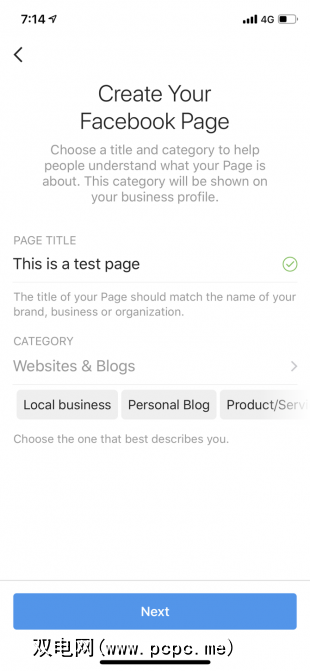 步骤7:填写页面标题的详细信息,选择类别,然后点击下一步。在下一页上,查看您的联系信息。