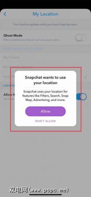 要在Snapchat上找到人们的位置(即使您处于“幽灵模式"),也需要单击允许。