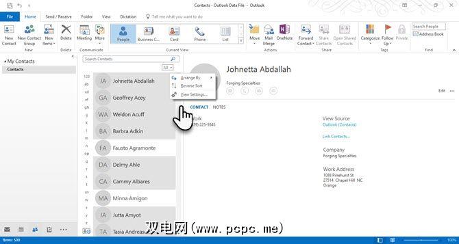 为邮件合并准备联系人池