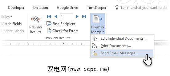 电子邮件正文完成后,请单击完成并合并>发送电子邮件。