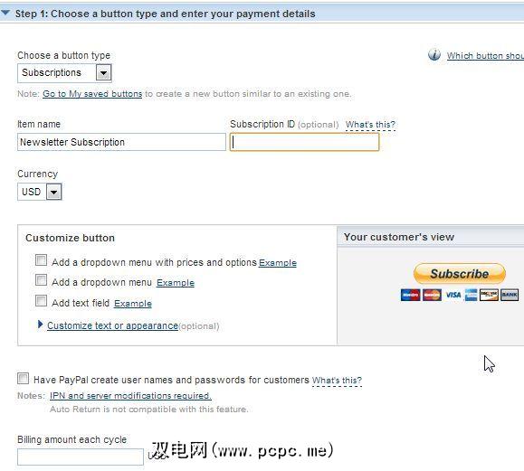 除了提供“立即购买"按钮外,我现在注意到的一件事是PayPal现在提供了一个列表可以使用的按钮,包括订阅,自动计费(非常适合网站或新闻订阅),甚至是大型购买的分期付款计划。