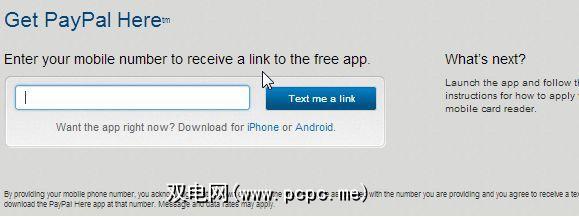 最新的创新方式PayPal现在提供以接受人们付款的功能是超酷的“ PayPal Here"应用程序,现已在iPhone或Android上提供。在PayPal上要做的就是在Merchant Services下选择此选项,然后在字段中键入您的手机号码以获取带有链接的短信,以安装“ PayPal Here"应用程序。