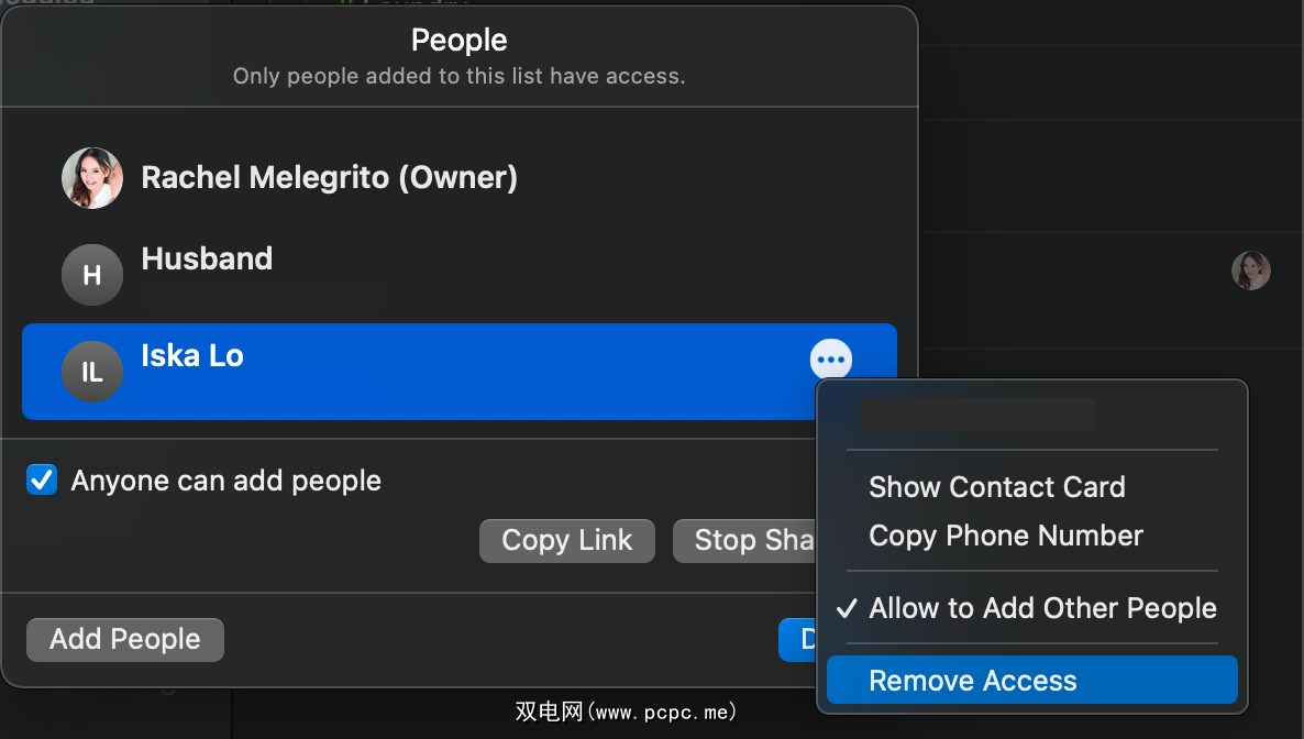 或者,您可以删除不想再与其共享列表的个人。只需按照以下步骤操作: