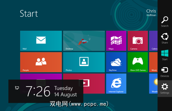 出现超级按钮栏时,单击 Settings 超级按钮。您也可以按WinKey + I直接从Windows的任何位置打开“设置"超级按钮。 (请查看我们的Windows 8键盘快捷键列表,以获取更多方便的快捷键。)