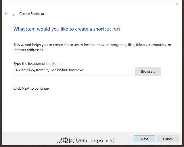 点击下一步,然后输入您的快捷方式是一个名称(像SlideToShutdown这样的名称很有意义,但您可以将其命名为“飞鸡吃生日蛋糕")。