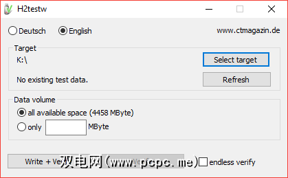 像FakeFlashTest一样,H2testw通过将文件写入设备上的所有可用空间,然后将其读回来检查驱动器上的可用空间。