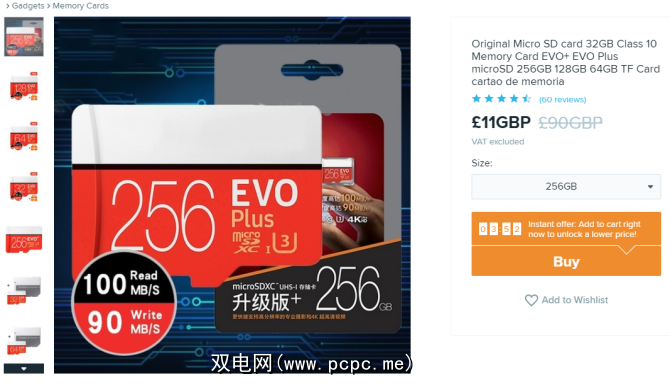提供的是“原始MicroSD卡"。存储卡没有甚至没有一个特定的品牌。但是,microSD卡经过精心设计,以模仿另一家技术巨头的设计。请参阅Wish.com原始MicroSD卡列表如何窃取三星EVO Plus官方存储卡的设计?