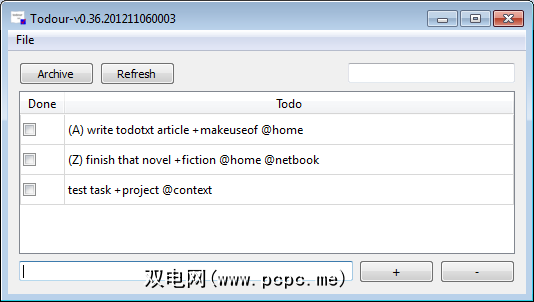 Todour 是适用于Windows和Mac的桌面程序。它没有实现Todo.txt的所有功能(例如,根本不支持日期),因此,如果您更喜欢Todo.txt,那么它可能很适合您。