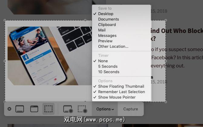 defaults write com.apple.screencapture type [file type] && killall SystemUIServer在Mojave和更高版本的macOS上,您需要可以直接从“截图"应用更改默认目标文件夹。为此,请点击屏幕快照工具栏中的 Options (选项)按钮,然后在结果菜单的 Save To (保存到)部分下选择一个您要选择的文件夹。 >在Mojave之前的Mac上,您将不得不依靠以下终端命令: