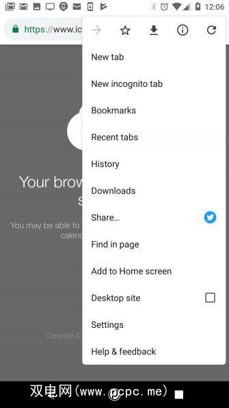 在Chrome中,您所要做的就是轻点鼠标右上角的三点菜单图标。浏览器窗口,然后在下拉列表中选择请求桌面站点。