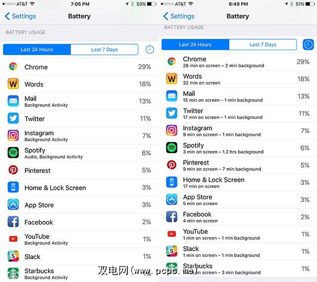一种远非科学的方法是检查手机上的电池使用情况。转到“设置">“电池",您可以查看您的应用列表,以及它们在过去24小时和过去7天中消耗了多少电量。