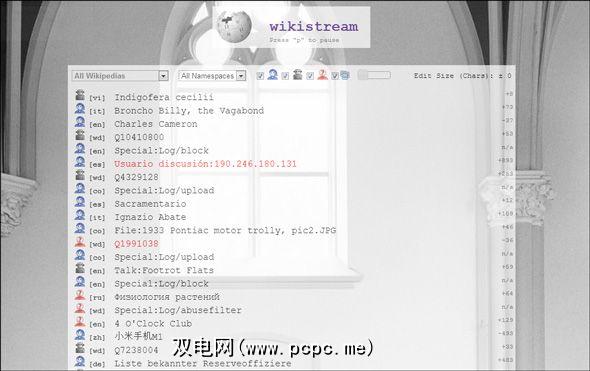 您在WikiStream上注意到的第一件事就是背景图片也会自动更新。嗯,跟踪工具的主要目的是让您了解Wikipedia中发生的事情,即使您试图掌握这些数字。您可以过滤流结果,以显示对特定语言版本的Wikipedia的编辑,也可以根据接收更改的Wikipedia上的不同资源进行显示。将鼠标悬停可以看到更改。您也可以使用小滑块根据编辑大小过滤页面。页面流式传输对您来说太快了吗?按下 P 可以暂停页面。