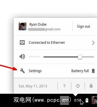 有点失望的是,至少没有一些真正简单的工具,例如记事本,日历应用程序之类的东西,我转到任务栏的另一侧,查看状态/设置图标必须提供的内容。单击时间会加载一个链接,该链接指向音量设置,您的Gmail帐户登录以及我所希望的“设置" 选项。