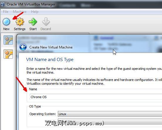 一旦安装并打开VirtualBox,请单击“ “新建"图标来设置运行ChromeOS的新虚拟机。将其命名为ChromeOS,以便以后记住它,并将操作系统设置为“ Linux ",将版本设置为“ Other Linux ",因为没有“ Chrome OS" "是在VirtualBox中专门定义的-但请放心,这会起作用。