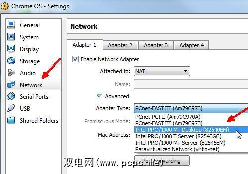 转到“ 网络< / em>"配置,并将“ 适配器类型"更改为桌面适配器(假设您正在像我一样在标准台式机或笔记本电脑上运行此虚拟机)。