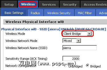 - 将 Wireless Mode 设置为 Client Bridge 。然后单击应用。