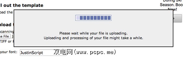 将扫描的文件另存为图像,即可开始上传了。返回MyScriptFont.com并上传您填写的表格。您需要等待一段时间;处理需要一段时间。