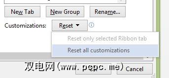 在Office中,如果您希望还原为基本功能区在菜单外观上,您可以使用自定义菜单屏幕中的重置>重置所有自定义选项,以恢复为“出厂"设置。