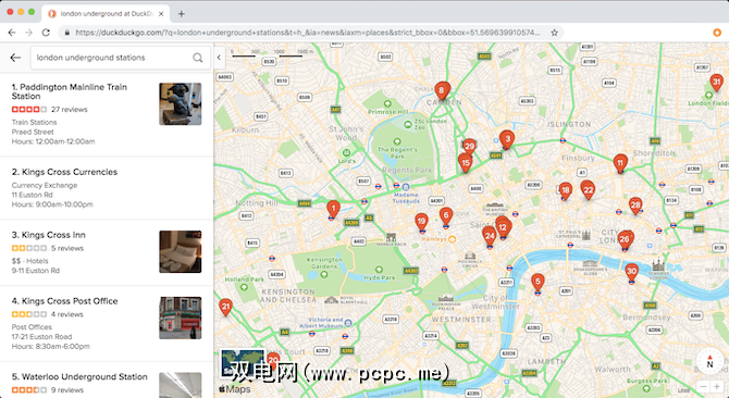 通过DuckDuckGo,您可以在Chrome,Edge或您选择的任何其他浏览器中使用Apple Maps。它可以在Windows,Chrome操作系统甚至Android上的DuckDuckGo应用程序中运行。